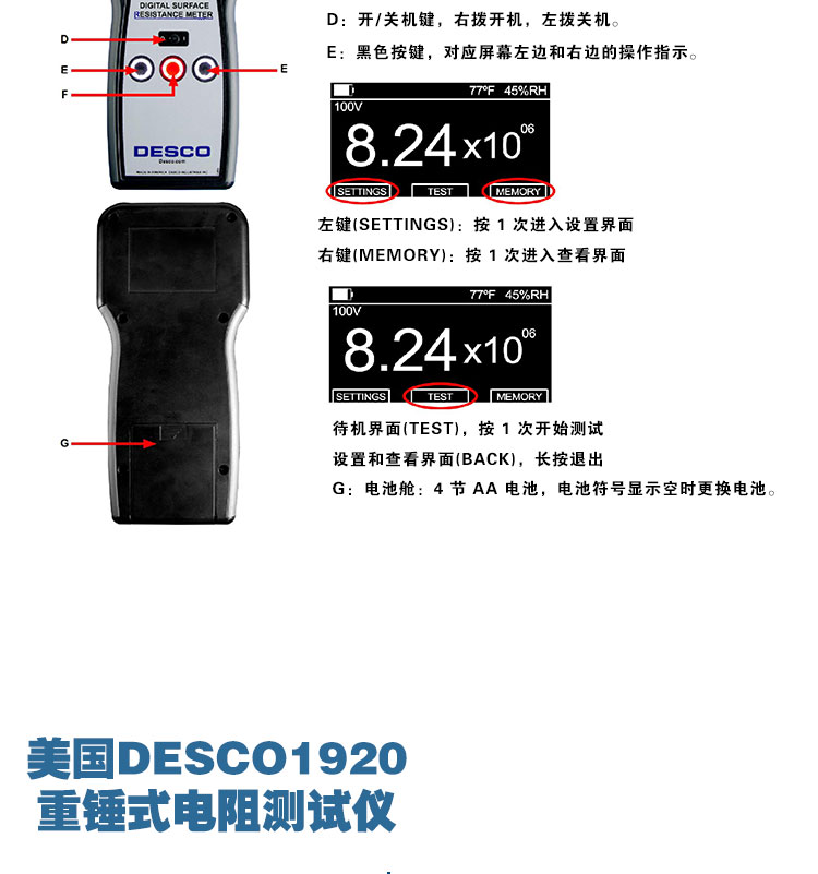 美国DESCO19290重锤式表面电阻测试仪