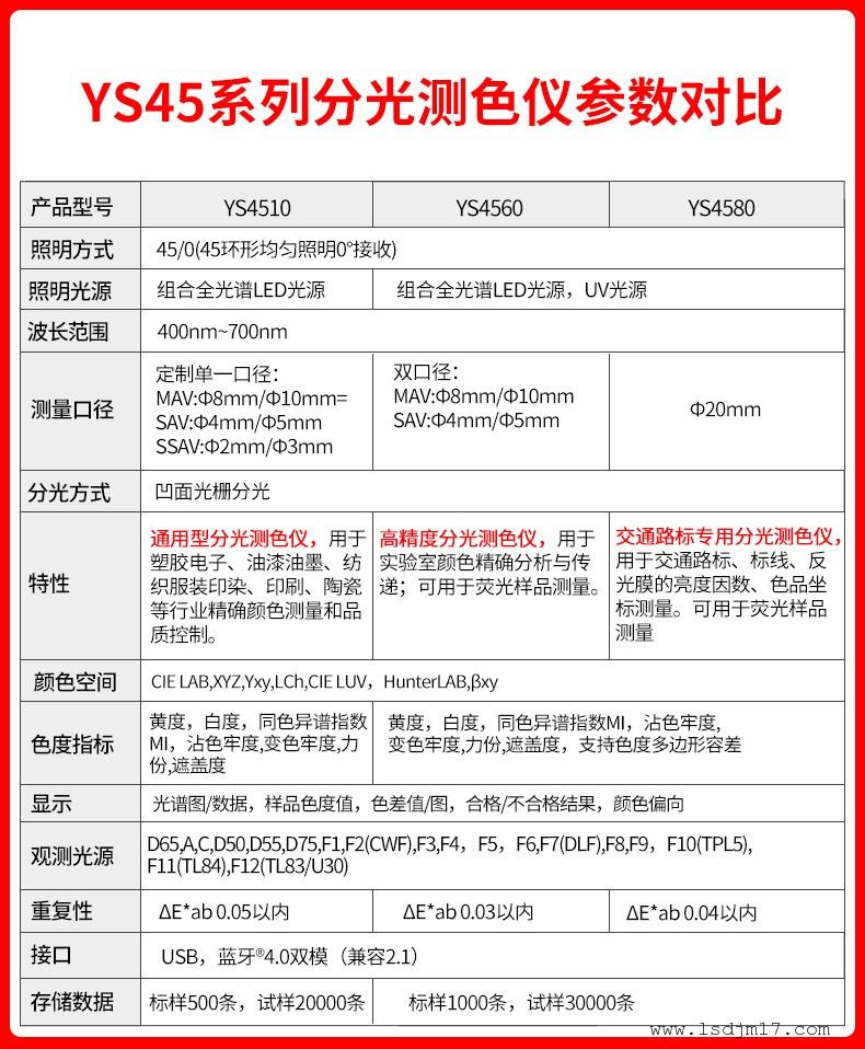 详细信息| 询价留言品牌:3nh 型号:YS4510 类型:便携式 显示范围:见详情 光源:见详情 测量时间:见详情 s 测量口径:见详情 mm 电源电压:见详情 V 外形尺寸:见详情 mm 重量:见详情 g 适用范围:见详情 外形尺寸:见详情 mm -