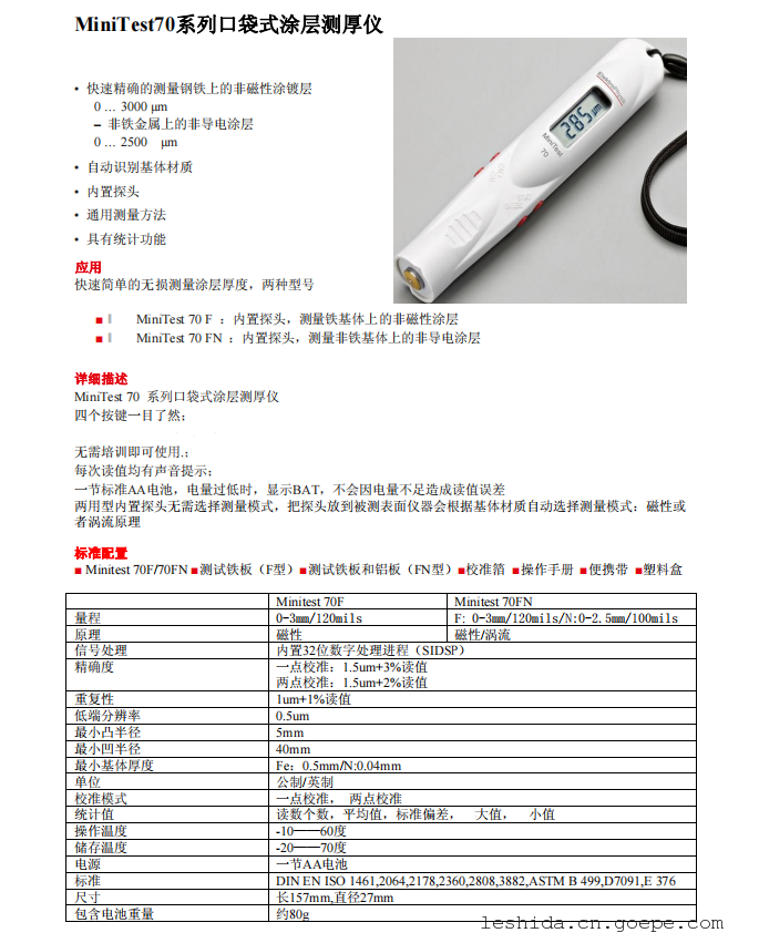 德国EPKMiniTest 70F口袋式涂层测厚仪