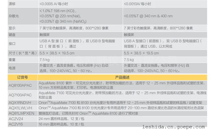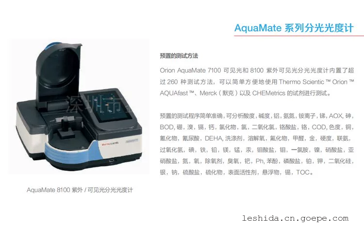 详细信息| 询价留言品牌:美国Orion奥立龙 型号:AquaMate 7100 加工定制:否 波长范围:见详情 波长准确度:见详情 光谱带宽:见详情 稳定性:见详情 外形尺寸:见详情 mm 光谱带宽:见详情 -