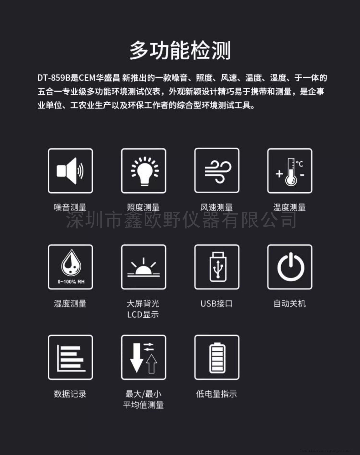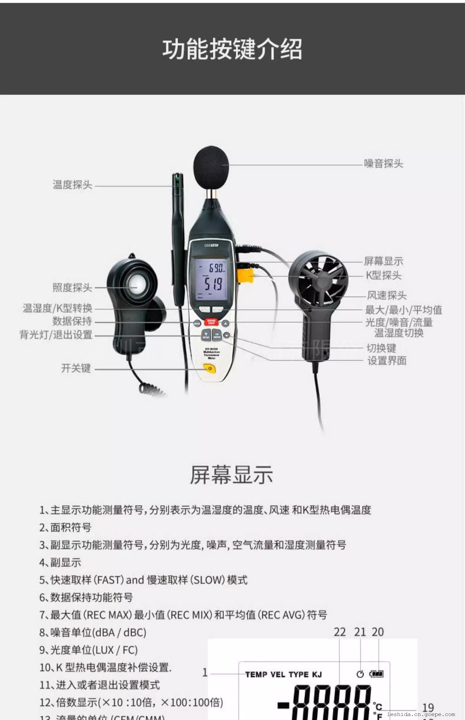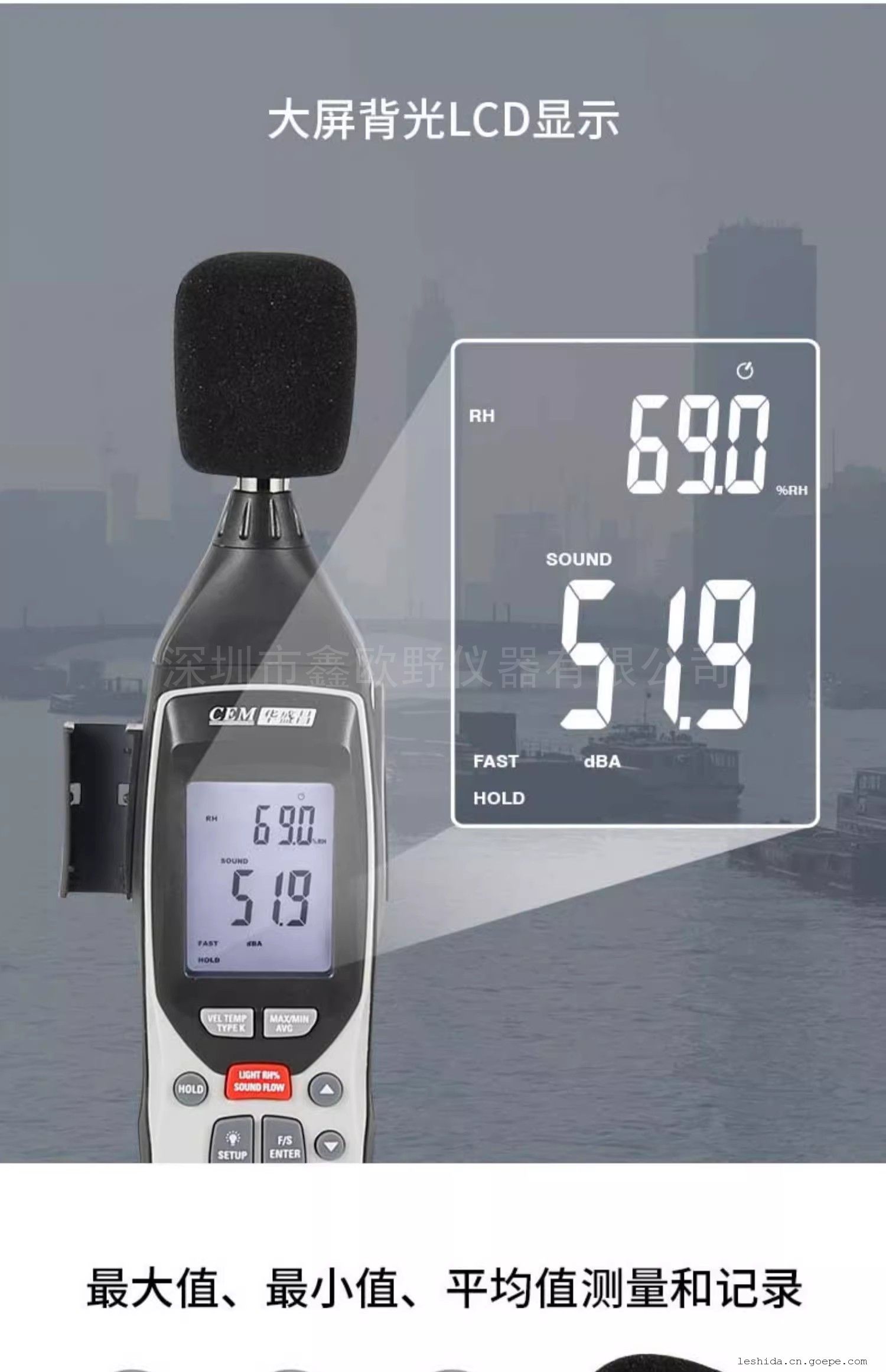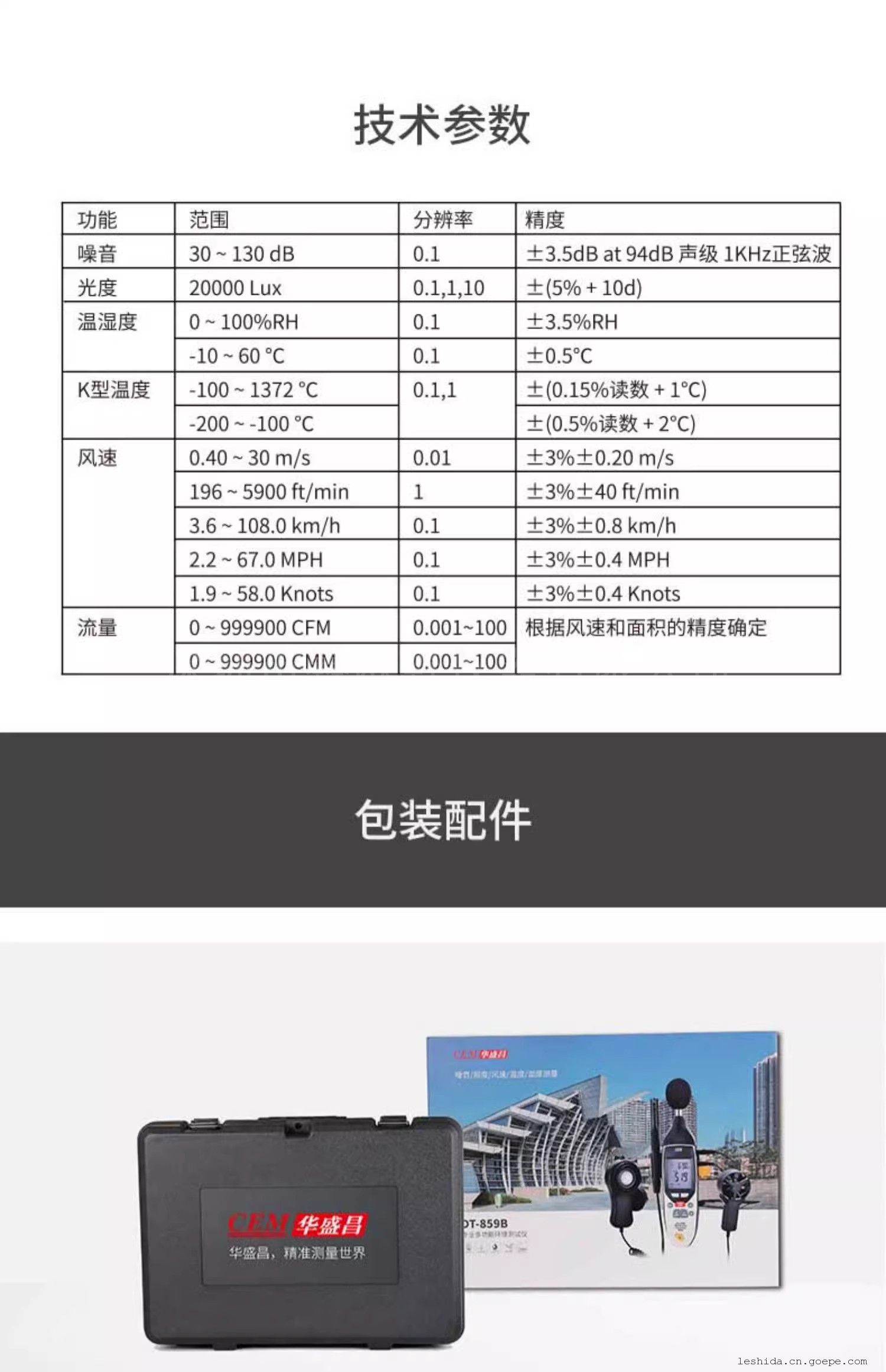 华盛昌CEM DT-859B噪音照度风速温湿度五合一检测仪