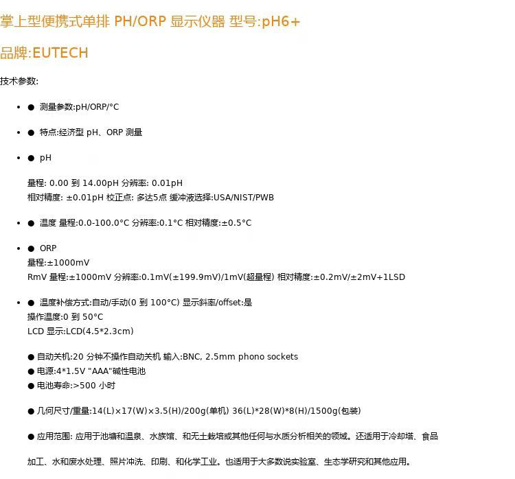 >> 优特Eutech pH6+酸度计