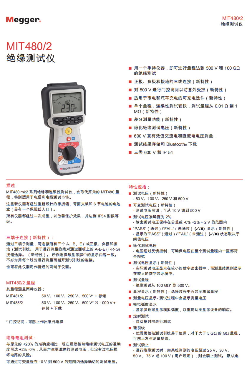 >> 梅凯Megger MIT485/2绝缘电阻测试仪 兆欧表
