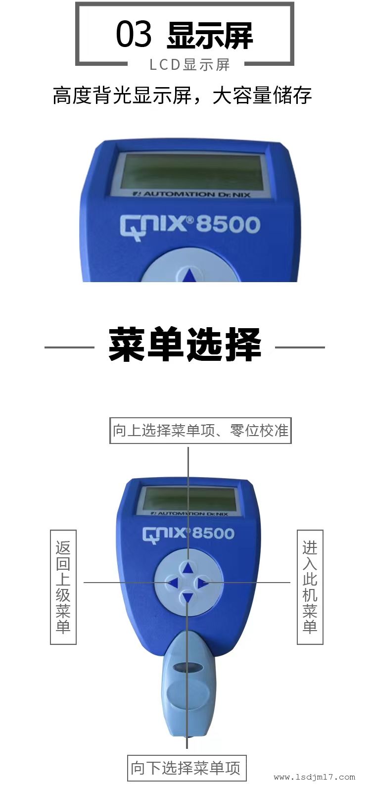 详细信息| 询价留言品牌:德国尼克斯 加工定制:否 型号:QNIX8500 类型:涂层 测量范围:0-5 mm 显示方式:数显 电源电压:3 V 外形尺寸:124mm×67mm×33 mm 显示方式:数显 -